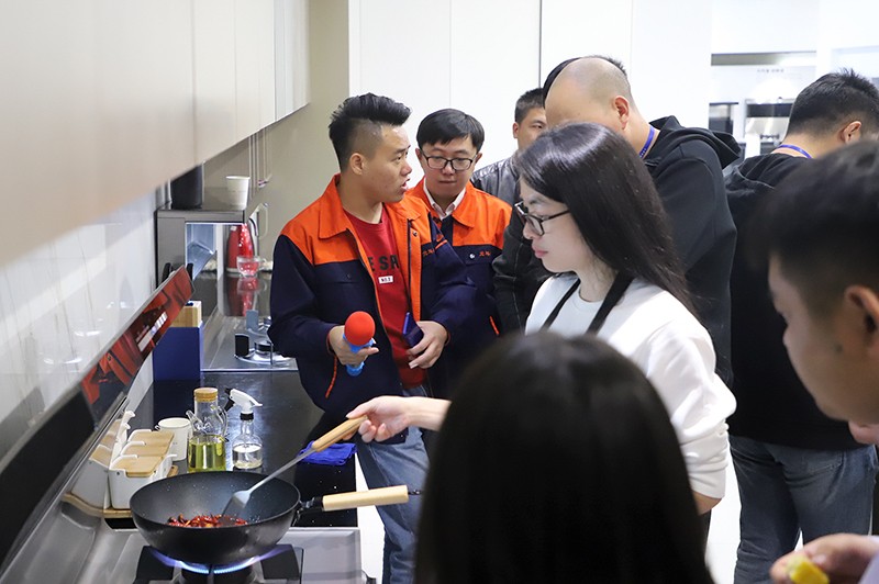現場,工作人員演示了北斗星集成灶米家APP的物聯網功能,還演示A6蒸箱操作,并爆炒辣椒演示北斗星集成灶的超強吸力。意向加盟商們紛紛稱贊,“集成灶吸油煙效果那么好,沒想到還這么智能!”