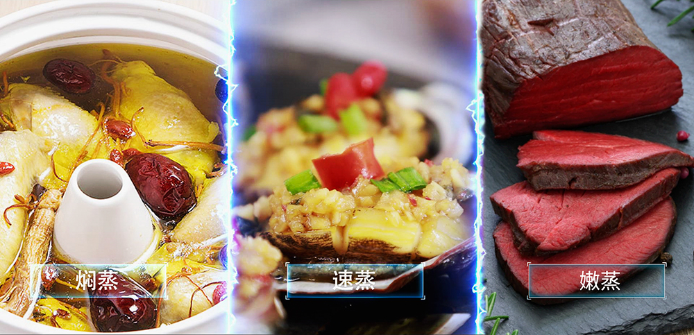 此外,還有還原古法蒸制精髓的“燜蒸”、能充分保留營養價值的“速蒸”、以及能保持食材水分和口感的低脂低鹽“嫩蒸“,令每個食材都有自己的專屬蒸制模式。