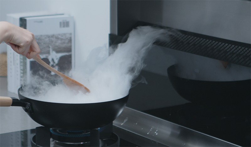 抽油煙機一般是安裝在頭上,是把油煙聚集到頂部。但是,集成灶采用側吸下排的方式,運用微空氣動力學原理,利用下沉空氣施壓形成負壓區,把油煙聚集到底部被吸走。采用這種方式,油煙的吸凈率甚至超過99%。