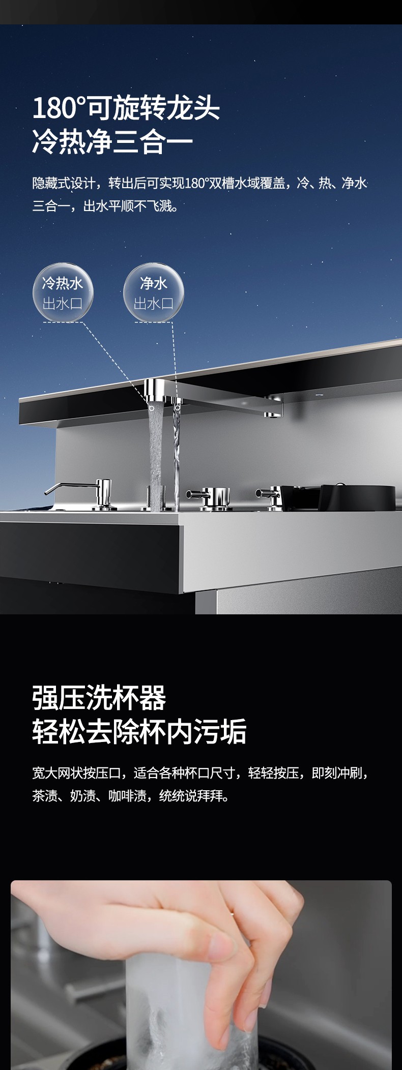 冷熱凈三合一龍頭 抽拉式沖洗龍頭 強壓洗杯龍頭